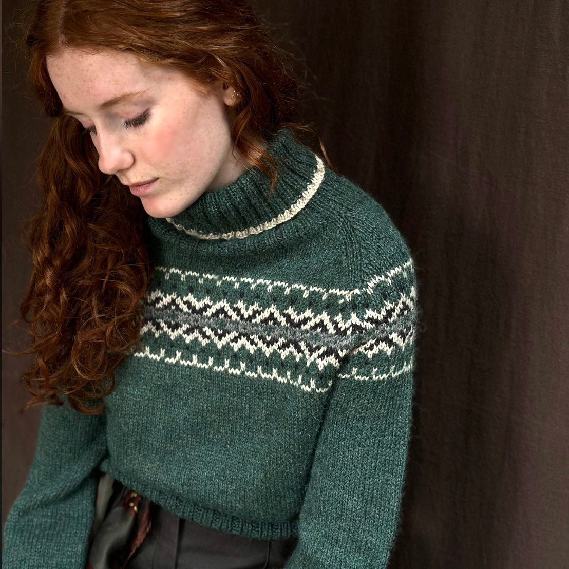 Intricate Fair Isle polo neck (green/cream)