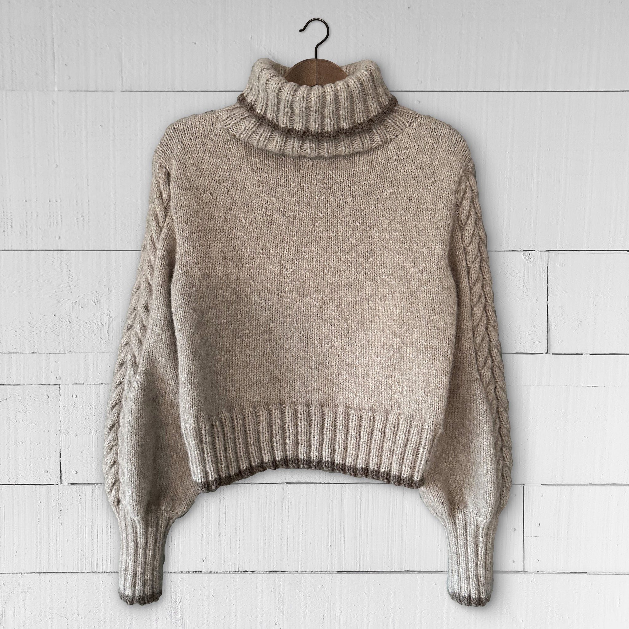 New this season, the Chunky cable sleeve jumper is the same style as our classic version but hand-knitted in a thicker yet incredibly lightweight alpaca/merino blended yarn.